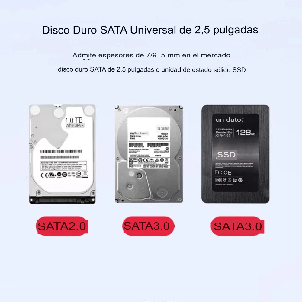 Compatibilidad universal: convierte sin problemas cualquier HDD o SSD con interfaz SATA de 2,5 pulgadas en un disco duro móvil.