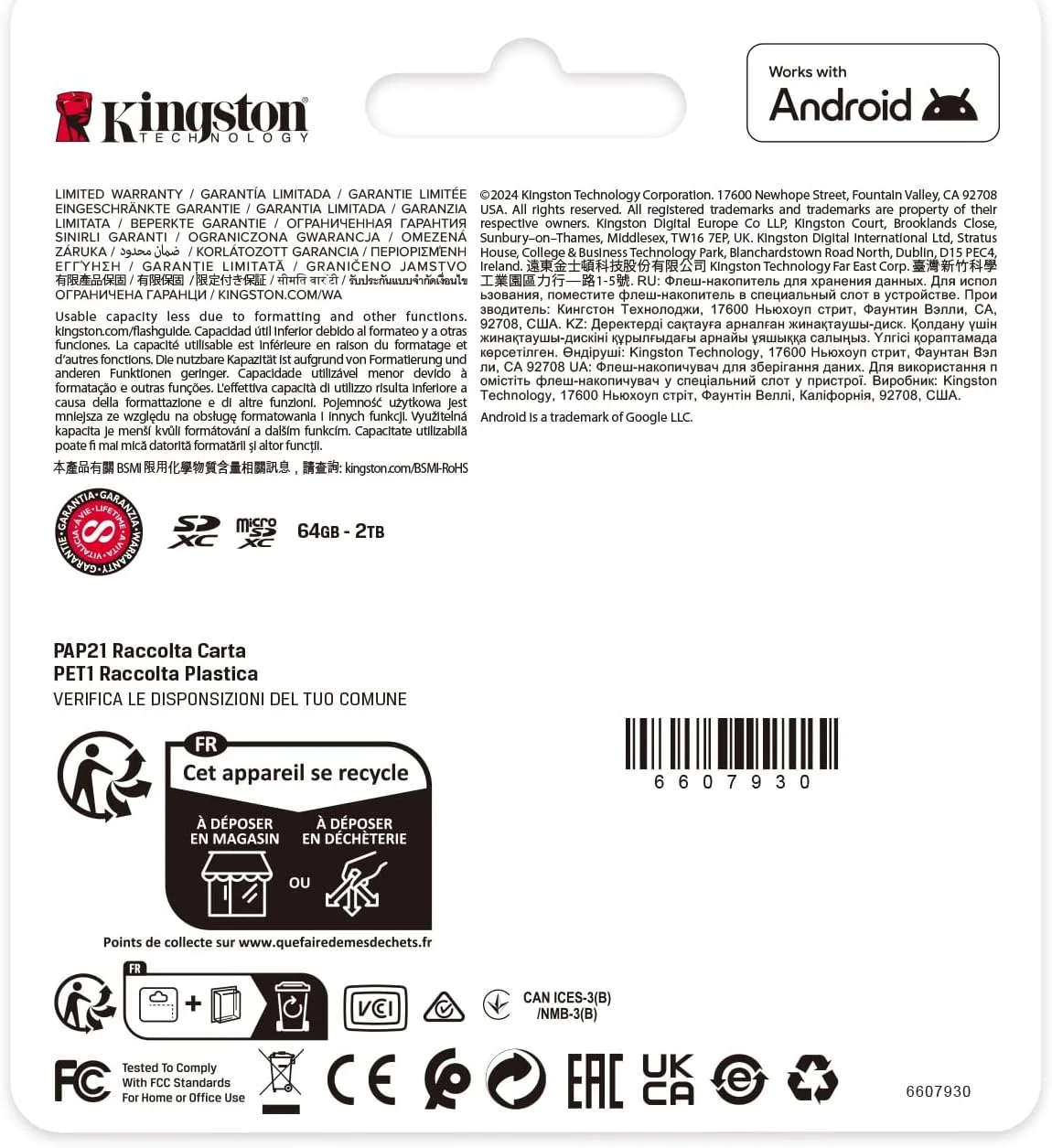 | Memoria Micro SD Kingston Canvas Select Plus SDCS3 / 128GB / 2en1 / 150MB/s |