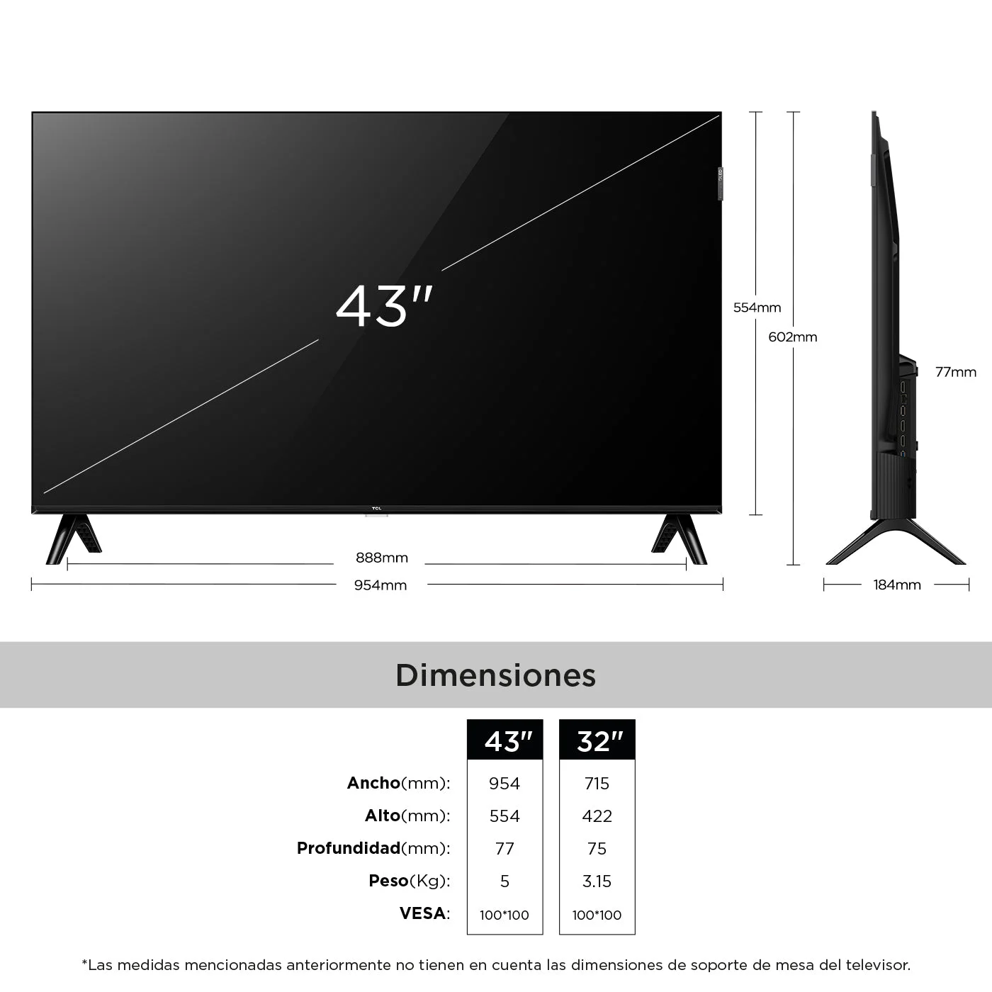 | Dimesiones y peso | - Montaje de pared VESA (mm) 100*100