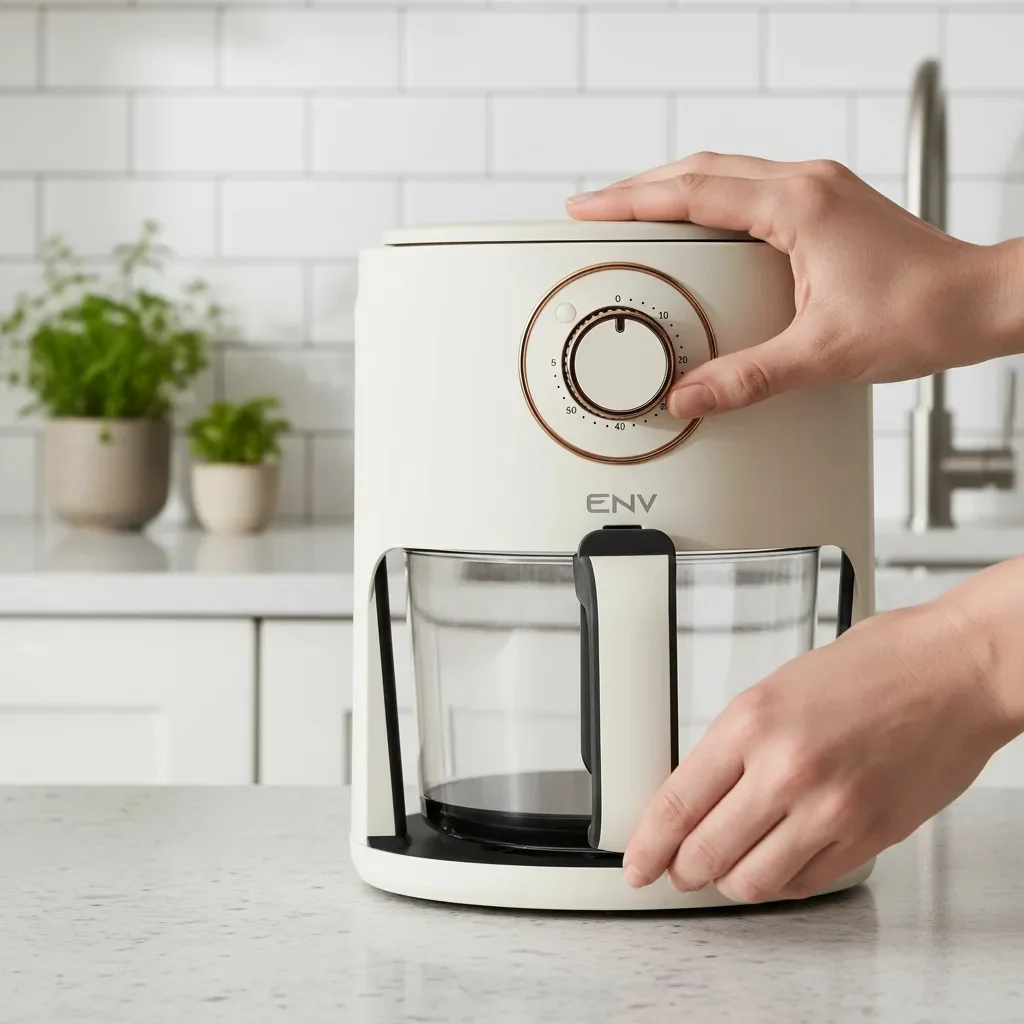 Freidora de aire ENV AF2202 / 4.5 Litros / Temp. hasta 200°C / Control de Perilla / Cesta de freír de Vidrio Templado / 1200W / 110V