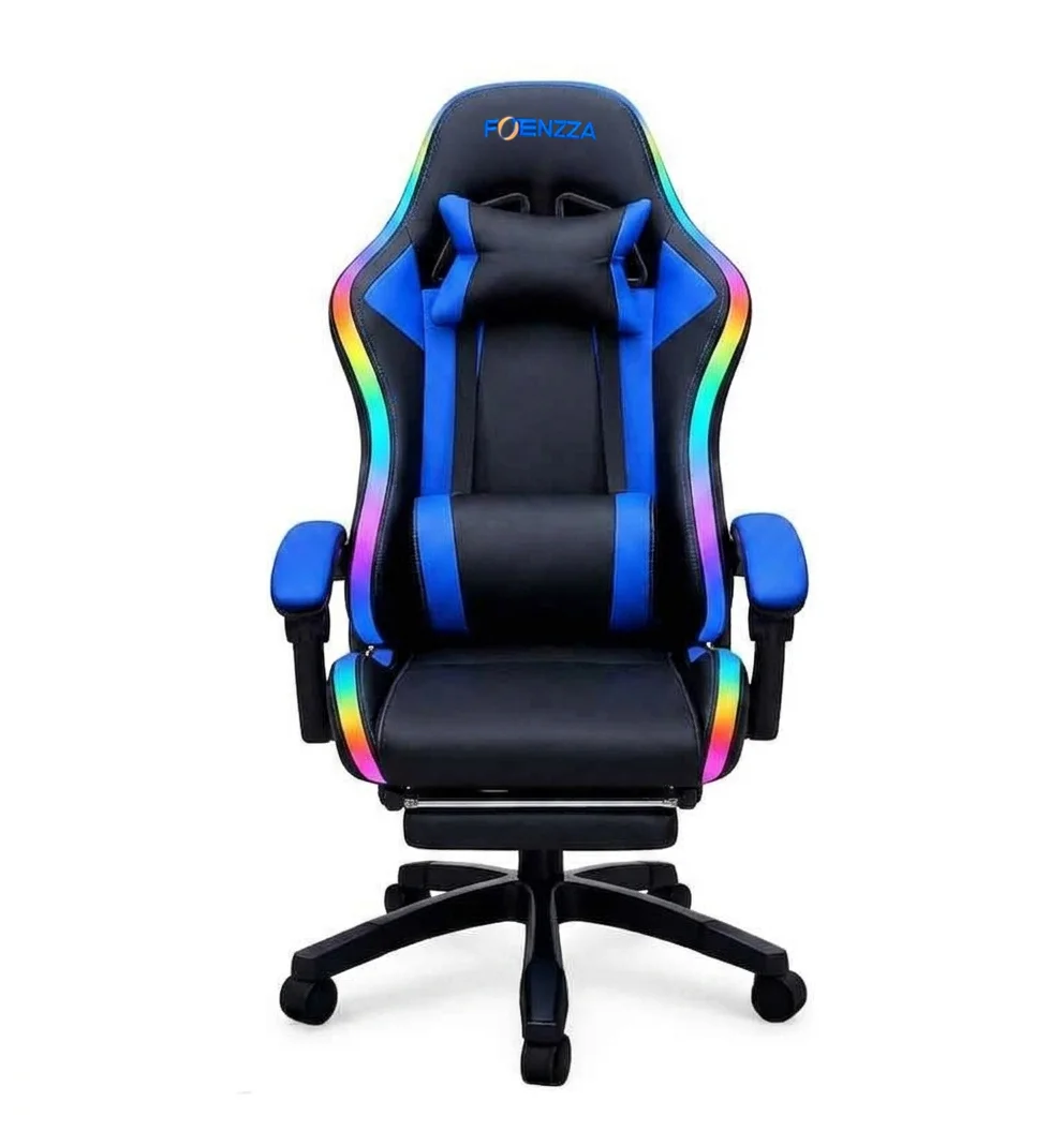 Silla Gamer Potenzza RGB Black/Blue / Iluminación RGB / Almohada cabeza y zona lumbar / reclinable 120º / Rotación 360° / Reposapiés retráctil