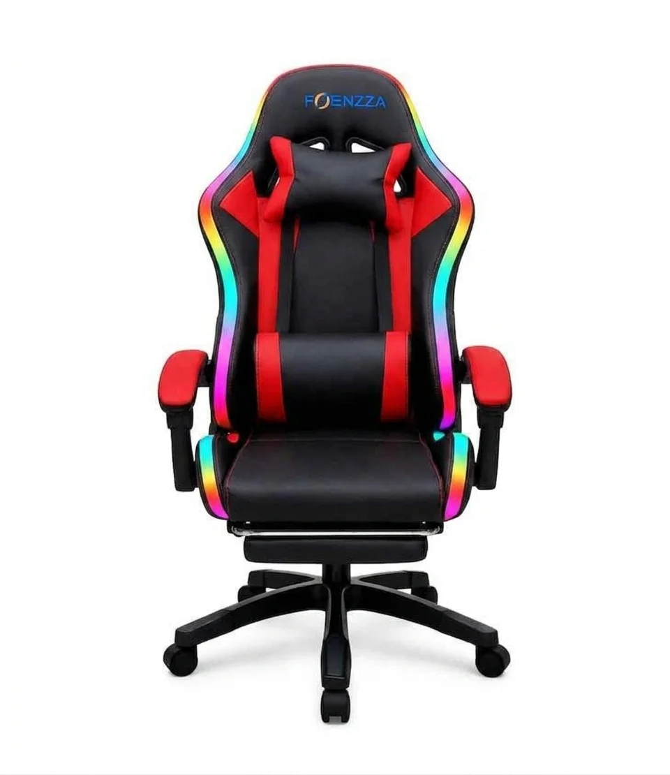 Silla Gamer Potenzza RGB Black/Red / Iluminación RGB / Almohada cabeza y zona lumbar / reclinable 120º / Rotación 360° / Reposapiés retráctil
