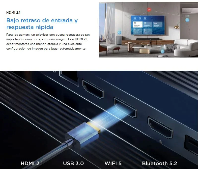 Para los gamers, un televisor con buena respuesta es tan importante como uno con buena imagen. Con HDMI 2.1, experimentarás una menor latencia y una excelente configuración de imagen para jugar automáticamente.