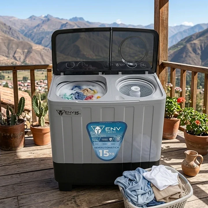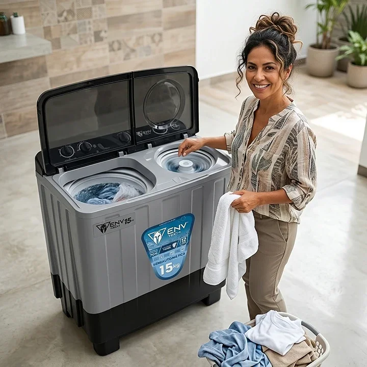Lavadora Semiautomática ENV Tech 15KG / doble tina / 2 Ciclos de lavado / Filtro atrapa pelusas / 110V, 600W