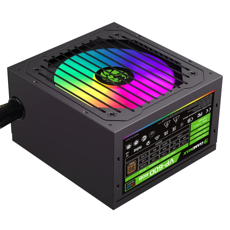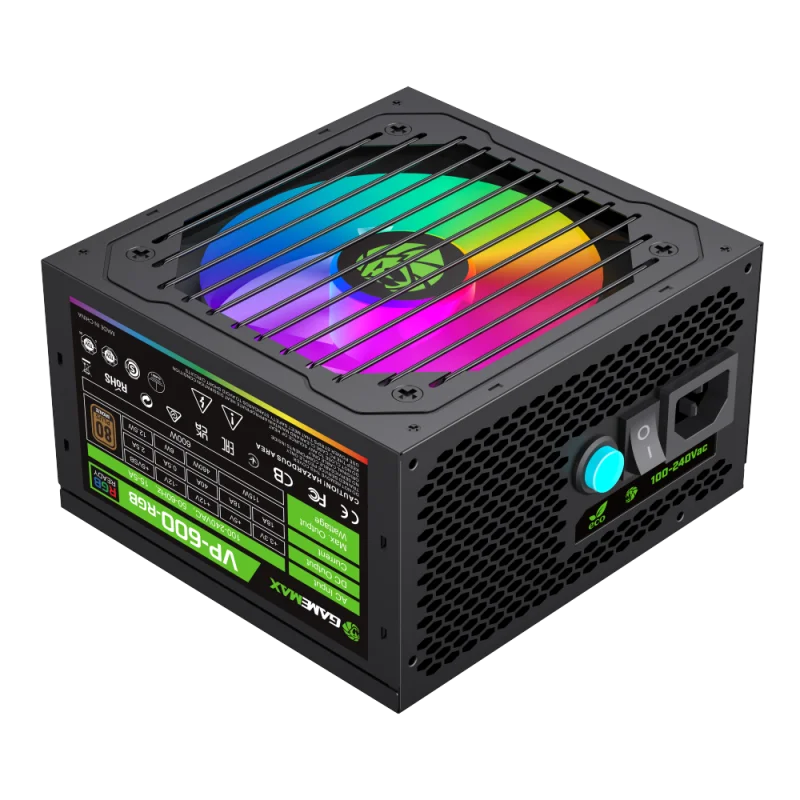 Especificaciones técnicas | 80PLUS | Cumple con APFC 80+ Plus | Nivel de eficiencia | 80+ Bronce | Nivel de ruido | Cero (ECO-ON),<32dba> | Factor de forma | Intel ATX 12 V 2.31 | Dimensiones | 140 mm (ancho) x 150 mm (largo) x 86 mm (alto) | Información para fans | Tamaño del ventilador | 120 milímetros | Control del ventilador | Ventilador ecológico integrado, botón ARGB con función de memoria | Cojinete del ventilador | Cojinete hidráulico | Esperanza de vida | 50.000 horas a 40 °C, 15 % - 65 % HR | Información del cable | Modularidad | Cableado cableado | Tipo de cable | Protector de tubo negro junto con CPU de colores y conector PCIe | Características eléctricas | Temperatura de funcionamiento | 0 - 50 °C (reducción del 100 % al 80 % de 40 °C a 50 °C) | MTBF a 25 °C, sin ventilador | 100.000 horas | Entrada de CA | Entrada de CA de rango completo (100-240 V CA) | Protección | OPP/OVP/UVP/OCP/SCP /OTP/NLP/SIP/OLP/NLO | Seguridad y medio ambiente | Seguridad y EMC | CB, CCC, CE | Cumplimiento ambiental | RoHS, WEEE, ErP Lote 6 | |