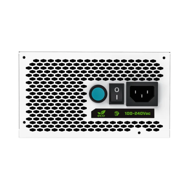 Especificaciones técnicas | 80PLUS | Cumple con APFC 80+ Plus | Nivel de eficiencia | 80+ Bronce | Nivel de ruido | Cero (ECO-ON),<32dba> | Factor de forma | Intel ATX 12 V 2.31 | Dimensiones | 140 mm (ancho) x 150 mm (largo) x 86 mm (alto) | Información para fans | Tamaño del ventilador | 120 milímetros | Control del ventilador | Ventilador ecológico integrado, botón ARGB con función de memoria | Cojinete del ventilador | Cojinete hidráulico | Esperanza de vida | 50.000 horas a 40 °C, 15 % - 65 % de humedad relativa | Información del cable | Modularidad | Cableado cableado | Tipo de cable | Cables blancos | Características eléctricas | Temperatura de funcionamiento | 0 - 50 °C (reducción del 100 % al 80 % de 40 °C a 50 °C) | MTBF a 25 °C, sin ventilador | 100.000 horas | Entrada de CA | Entrada de CA de rango completo (100-240 V CA) | Protección | OPP/OVP/UVP/OCP/SCP/OTP /NLP/SIP/OLP/NLO | Seguridad y medio ambiente | Seguridad y EMC | CB, FCC, CE | Cumplimiento ambiental | RoHS, WEEE, ErP Lote 6 | |