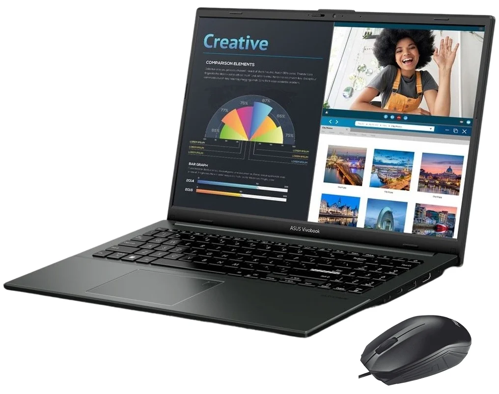 ASUS VivoBook Go 15 (E1504F) / AMD® Ryzen™ 3 7320U / 8 GB LPDDR5 / 512GB NVMe™ SSD / 15.6" FHD / Sin Sistema (OS) / Wi-Fi 6E& BT 5.3 / Lector de Huellas / Teclado Español alfanumérico / Mixed Black / incl. Mouse Asus |