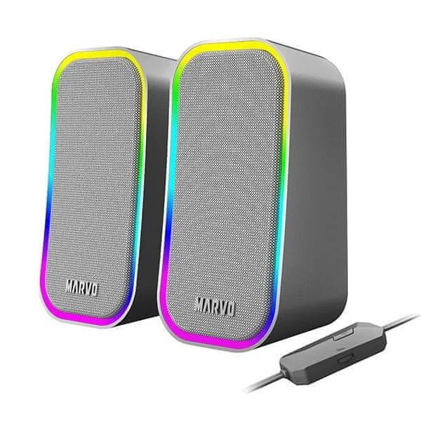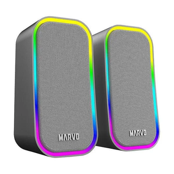 Parlantes Gaming MARVO Havoc 20 Grey (SG-285) Estéreo 6W (2*3W) / Efectos LED RGB / Control de vol. / Jack 3.5 (Audio) + USB(Power)