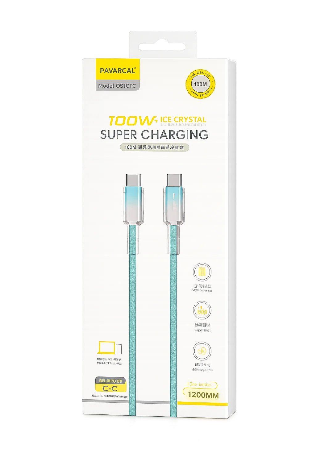 Cable Pavareal Q51CTC USB-C a USB-C / 100W / 1.2 m / Cristal de hielo/Turquesa