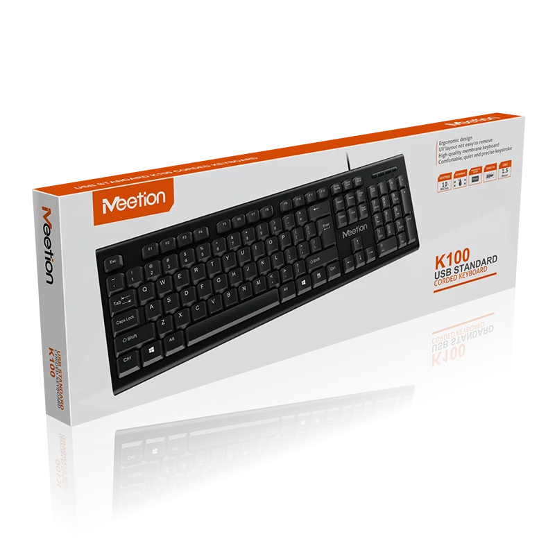 Teclado MEETION K100 / Resistente al agua / Compatible Windows y MacOS / USB, Cable 1.5 m / 105 teclas, Español