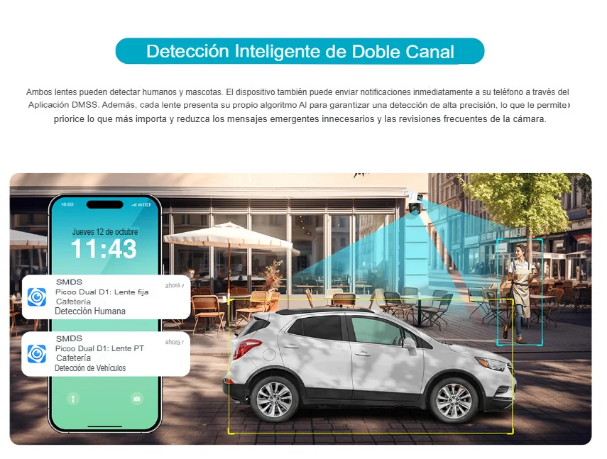 - Detección inteligente de doble canal de Humana/vehículo con AI