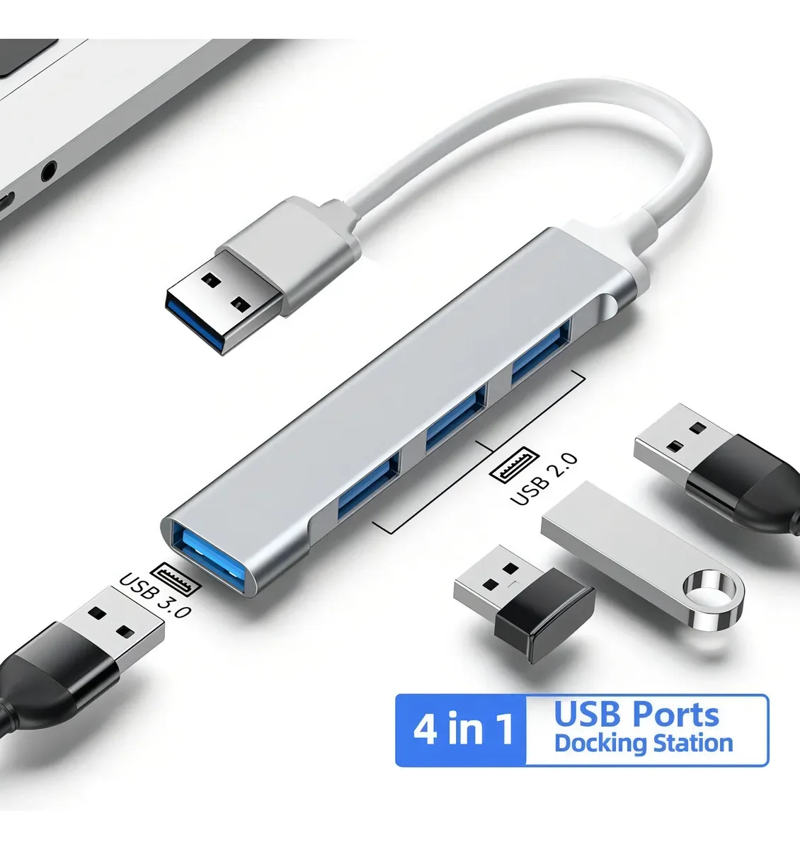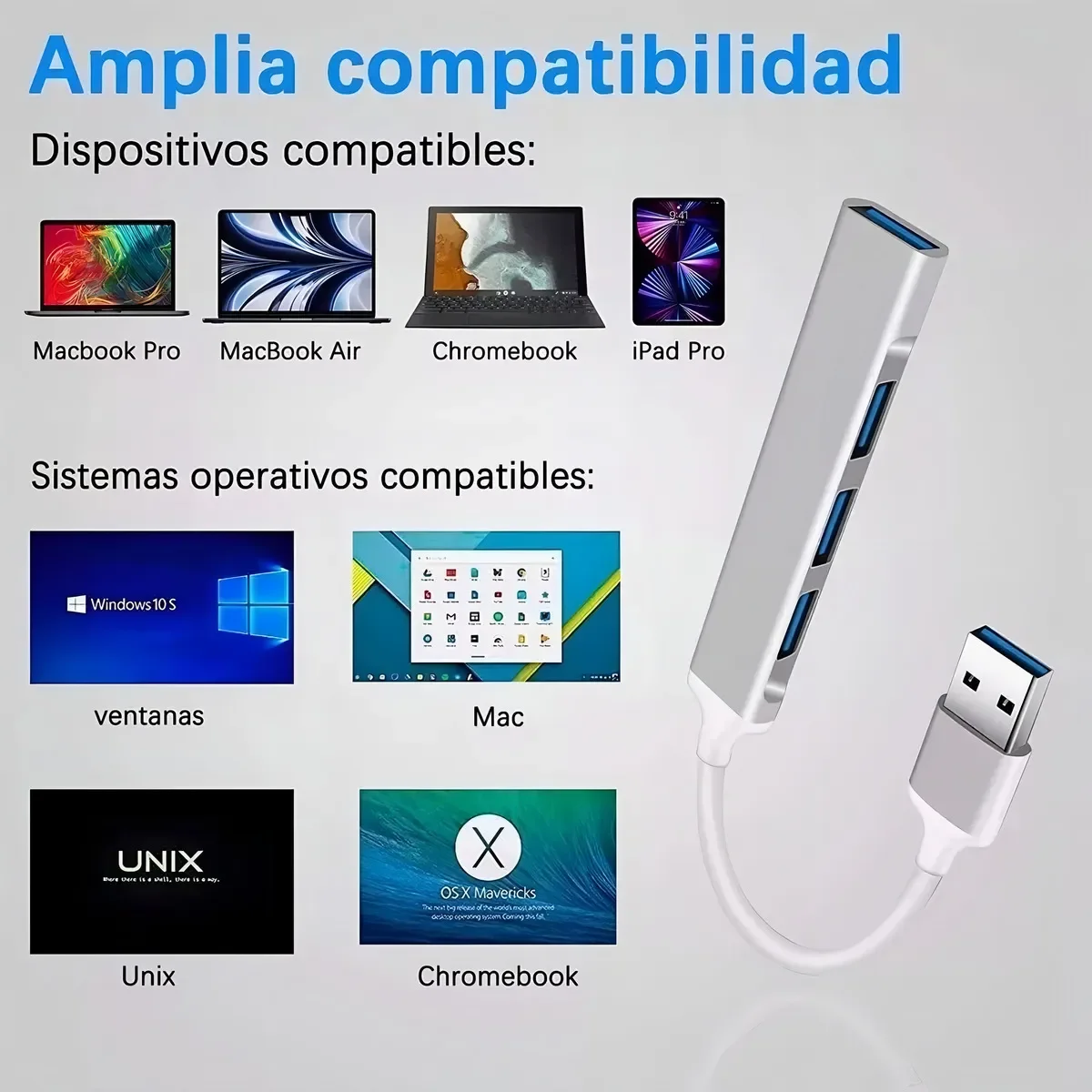 Este concentrador expande un puerto USB en 4 puertos USB, permitiendo conectar múltiples dispositivos USB-A a su computadora portátil, como unidades flash, mouse, teclado, altavoces y discos duros. - Plug and Play