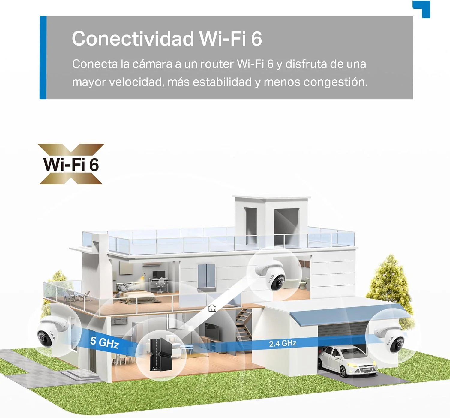 - Conexión de doble banda Wi-Fi 6 : conecte la cámara a un enrutador Wi-Fi 6 y disfrute de una velocidad mejorada y una mayor estabilidad.