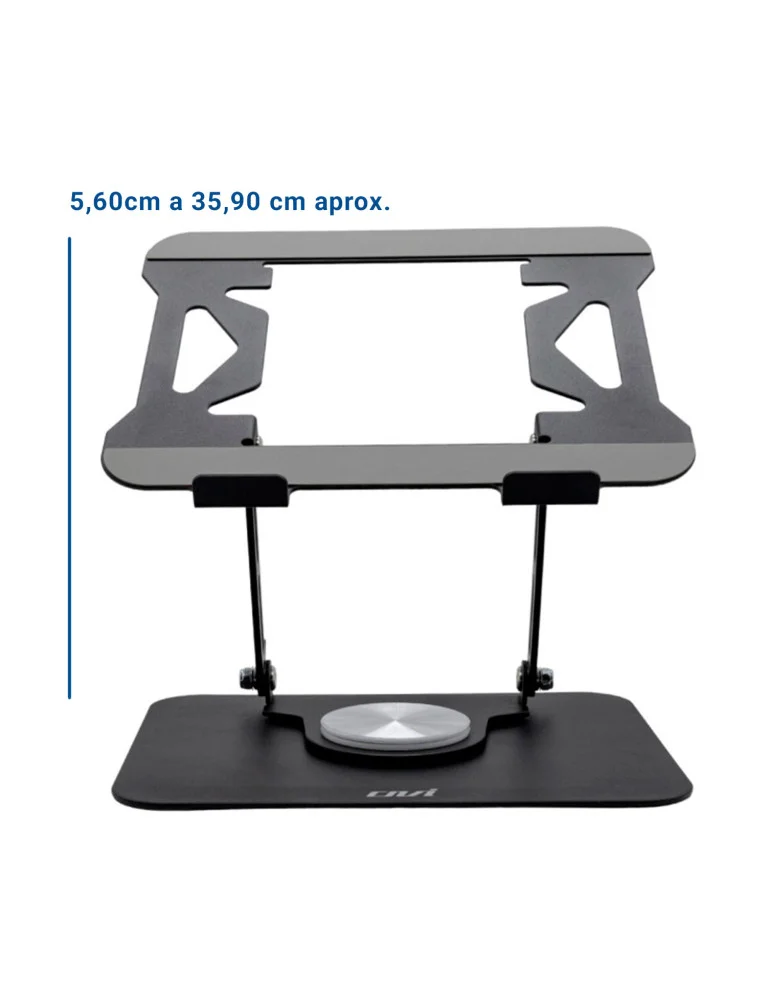 | Base Plegable P/Laptop/Tablet OVI K03 / hasta 17.3" / Rotación Libre 360° / Altura ajustable / Material: Acero + silicona antideslizante |