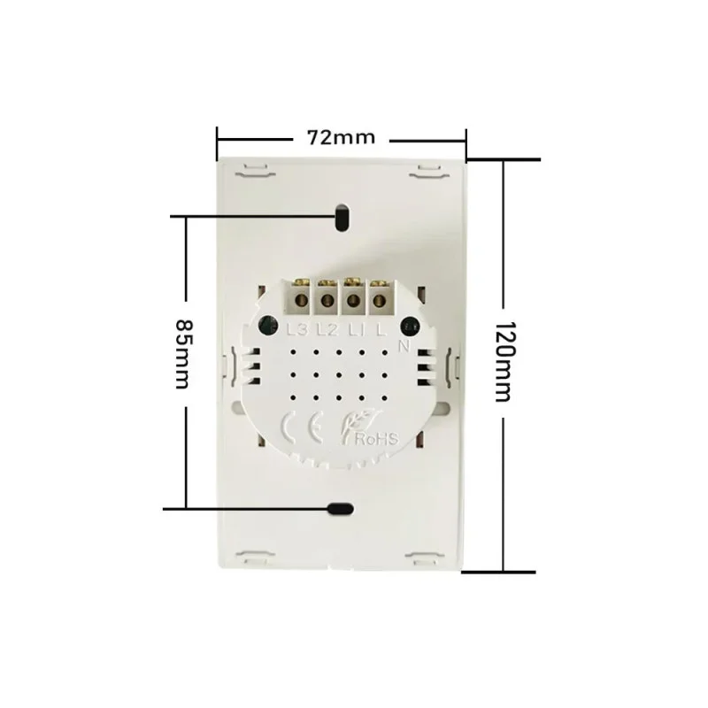 Cod. 889 Interruptor de pared Smart WIFI WHC06 WH / 2 botones táctiles / No requiere Neutro / Control por APP / compatible con Alexa, Google Home / Dim.: 120*72*7mm / blanco