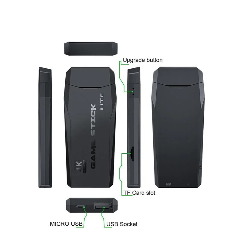 Consola de video juegos GAME STICK LITE 4K / Interfaz HDMI / Incluye + de 10000 Juegos / 64GB / Retro Classic Gaming + 2 Controles inalambricos 2.4GHz