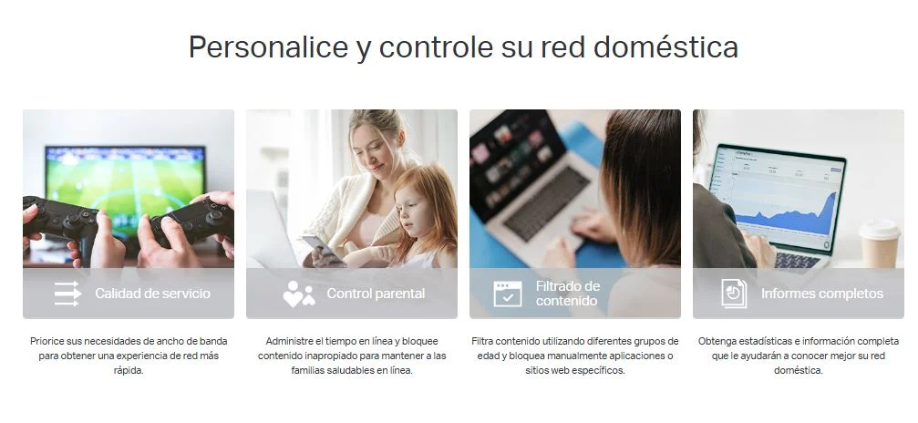 | Software | | Protocolos | IPv4 IPv6 | | Controles parentales | Controles parentales Perfiles personalizados Filtro de contenido profesional Biblioteca Tiempo en familia Hora de dormir Tiempo libre Recompensas de tiempo Clasificación del tiempo en línea en familia Pausar Internet Informes semanales y mensuales | | Tipos de WAN | IP dinámica IP estática PPPoE PPTP L2TP | | Calidad del servicio | QoS por dispositivo | | Servicio en la nube | Actualización de firmware vía OTA TP-Link ID DDNS | | Reenvío NAT | Reenvío de puertos UPnP | | Televisión por IP | Proxy IGMP Puente de vigilancia IGMP Etiqueta VLAN | | DHCP | Servidor de lista de clientes DHCP de reserva de direcciones | | DDNS | TP-Link | | Gestión | Aplicación Deco | |