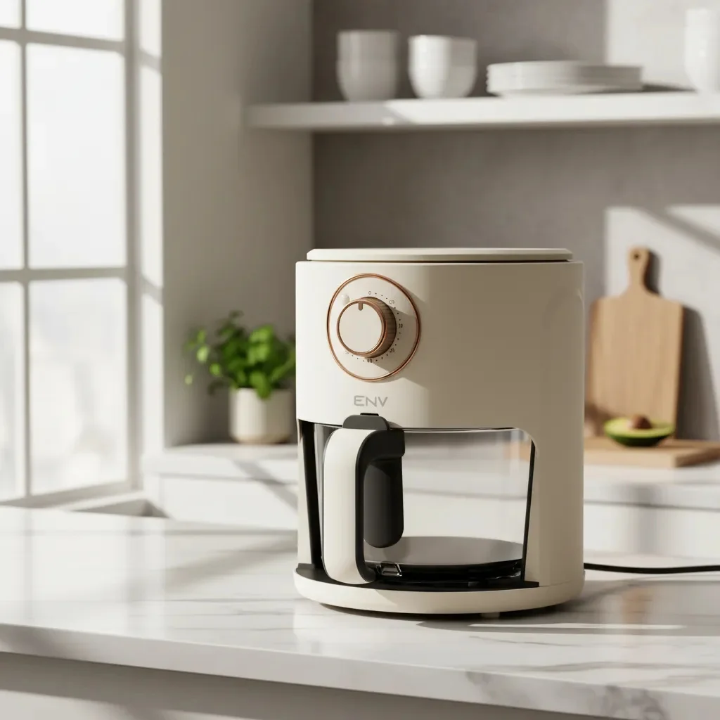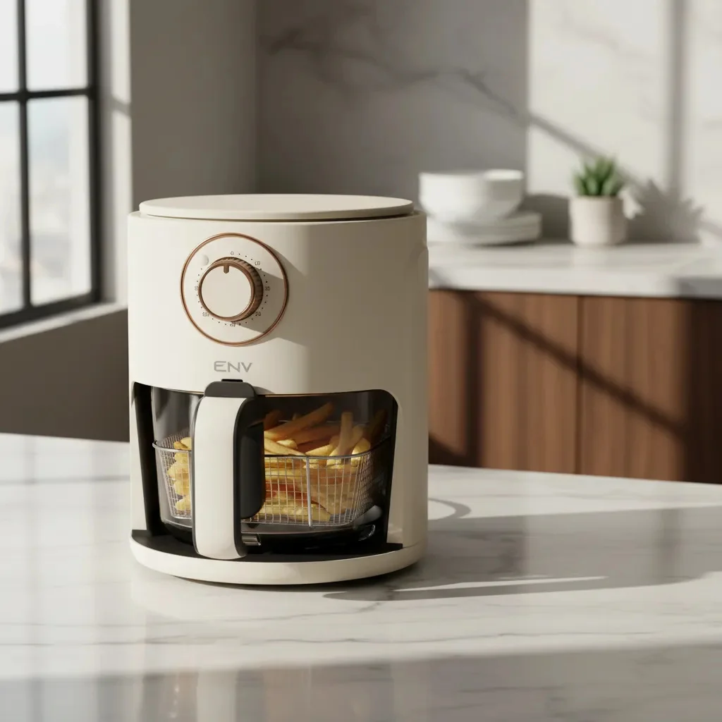 Freidora de aire ENV AF2202 / 4.5 Litros / Temp. hasta 200°C / Control de Perilla / Cesta de freír de Vidrio Templado / 1200W / 110V