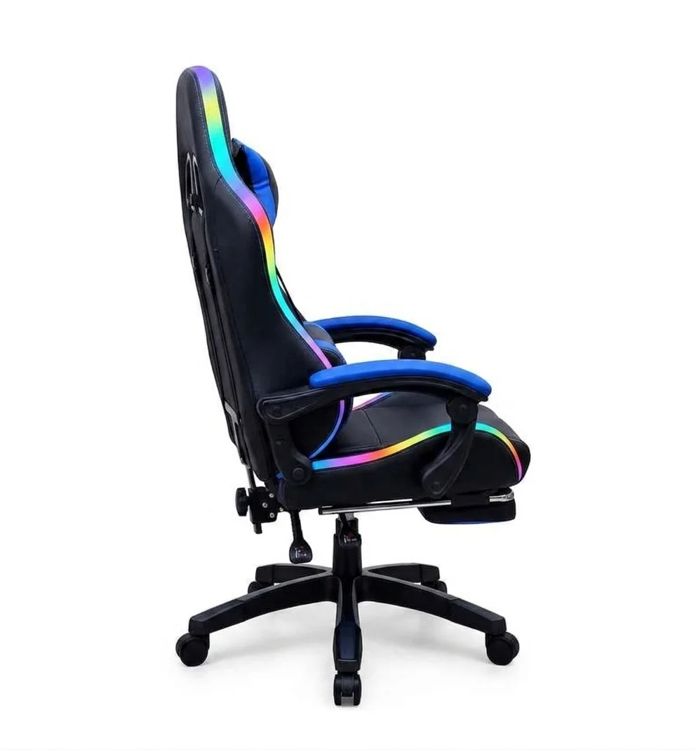 Silla Gamer Potenzza RGB Black/Blue / Iluminación RGB / Almohada cabeza y zona lumbar / reclinable 120º / Rotación 360° / Reposapiés retráctil