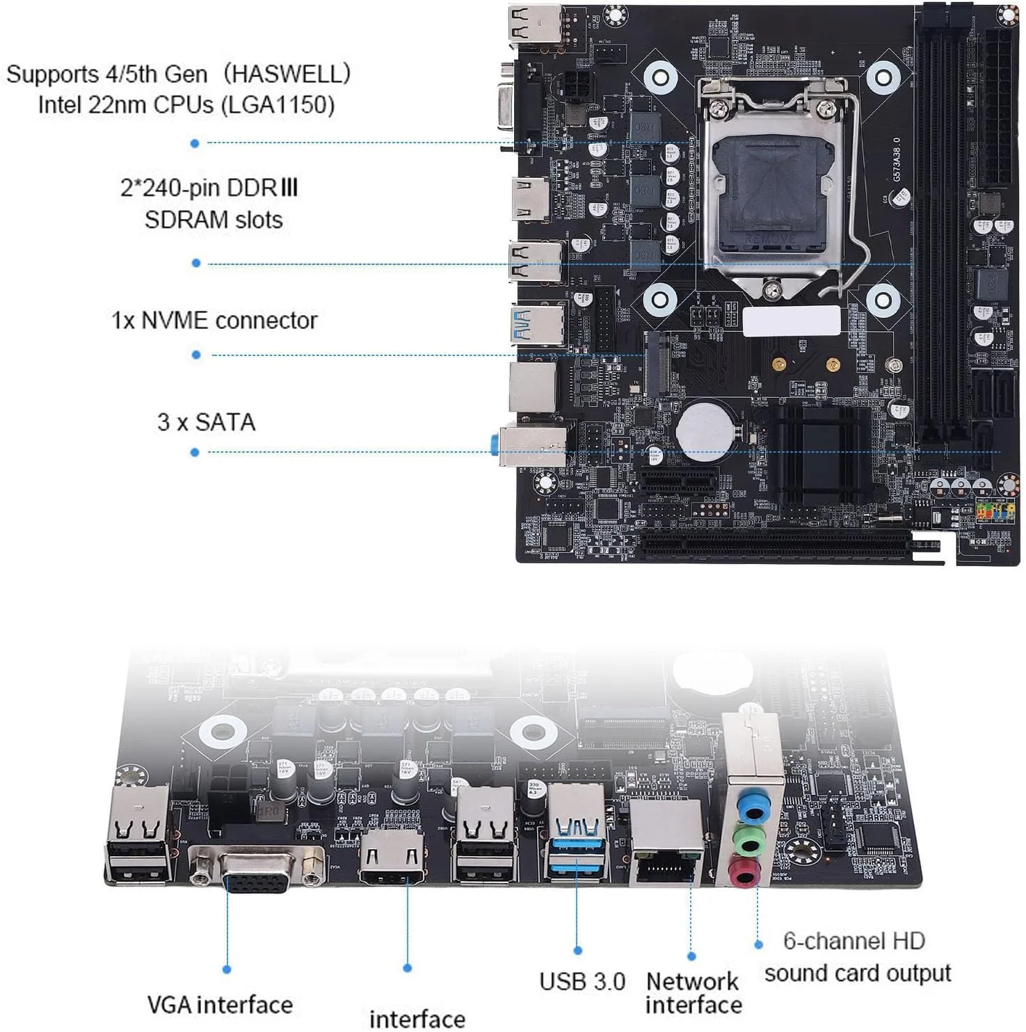 | CPU | Soporta LGA1150 Socket i3/i5/i7 series de CPU |