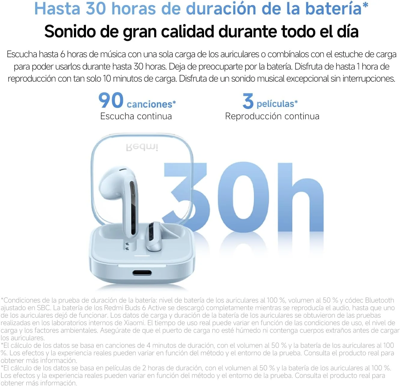 Auriculares: 90 minutos