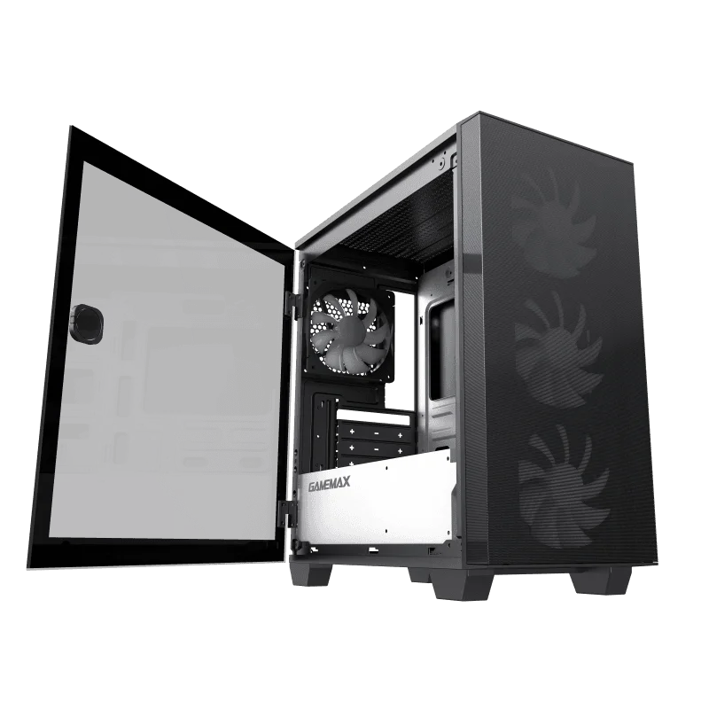Case Gaming GAMEMAX Aero Mini Eco / MATX / Panel frontal Mesh / tapa lateral vidrio templado / USB3.0 + USB 2.0 / HD audio / Incluye 4*ventiladores Black 12cm |