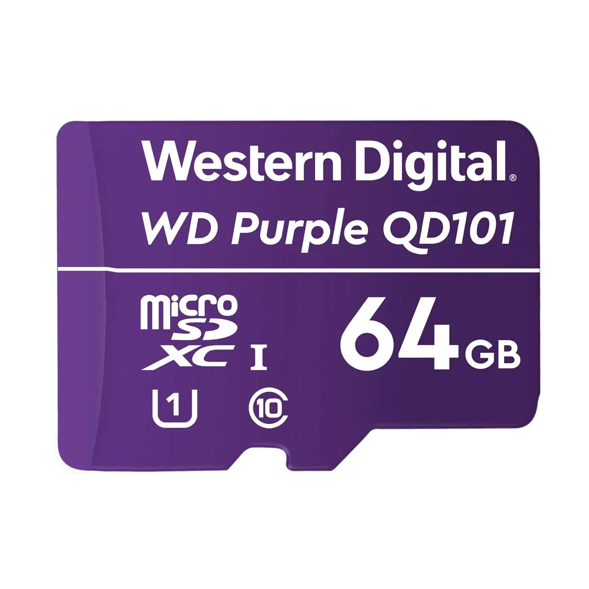 | Micro SD Western Digital WD Purple QD101 / 64GB / P/Videovigilancia / Clase 10 U1 / Lectura 50MB / Escritura 40MB / Ultra resistencia |