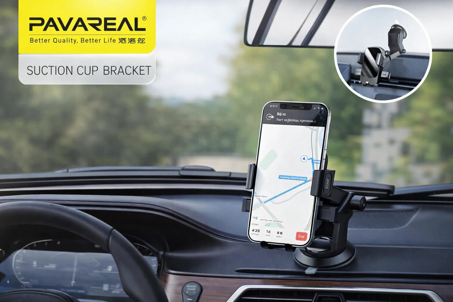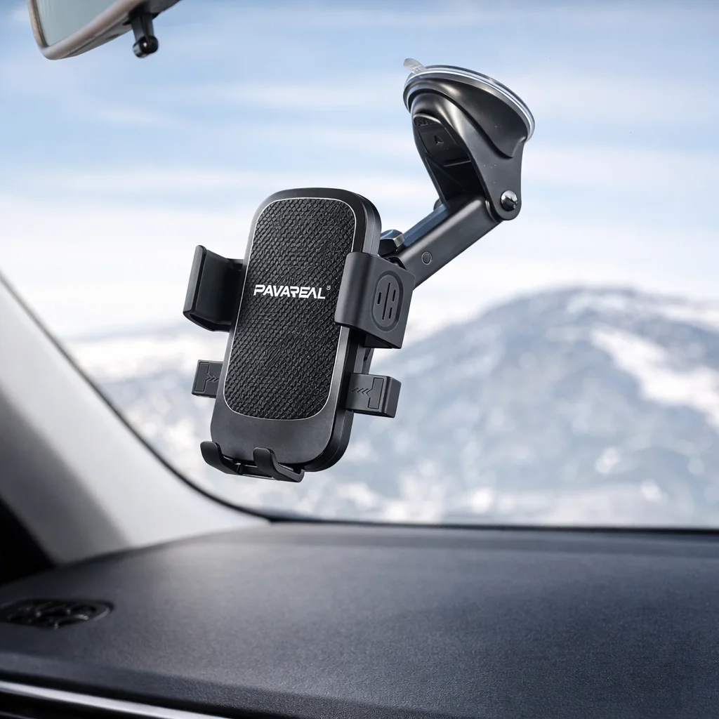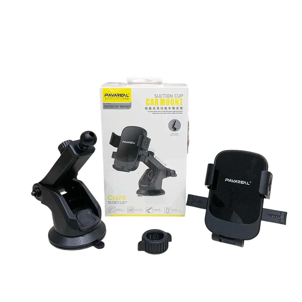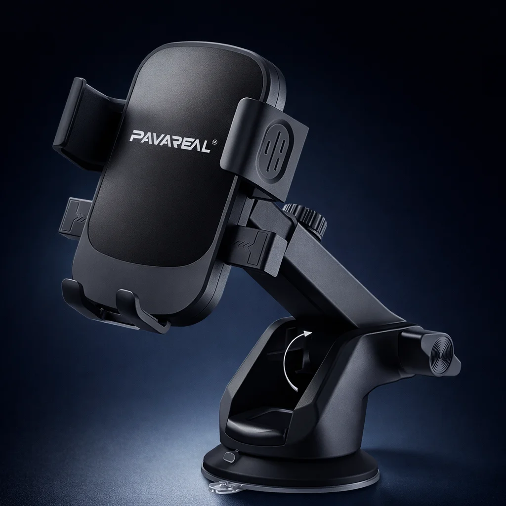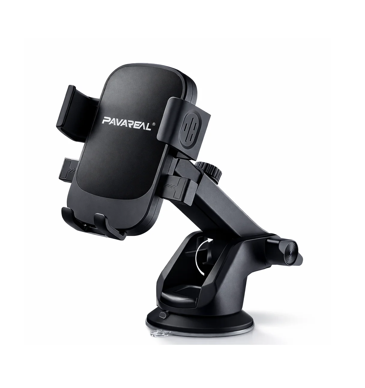 Soporte de celular P/Auto Pavareal CH78 / 2en1 parabrisa & tablero (ventosa potente) / Gira 360° / Sujeción auto. / brazo telescópico 10±15cm / Material: ABS+PC+silicona