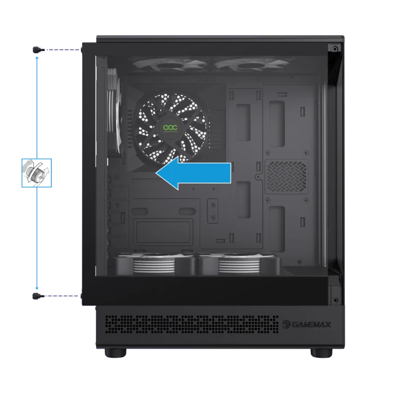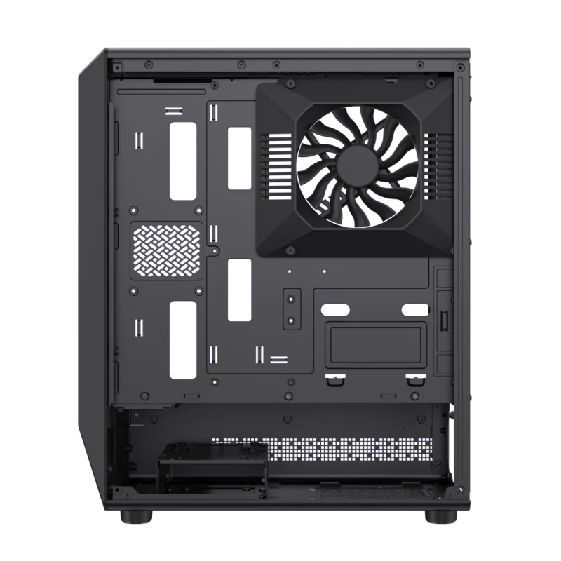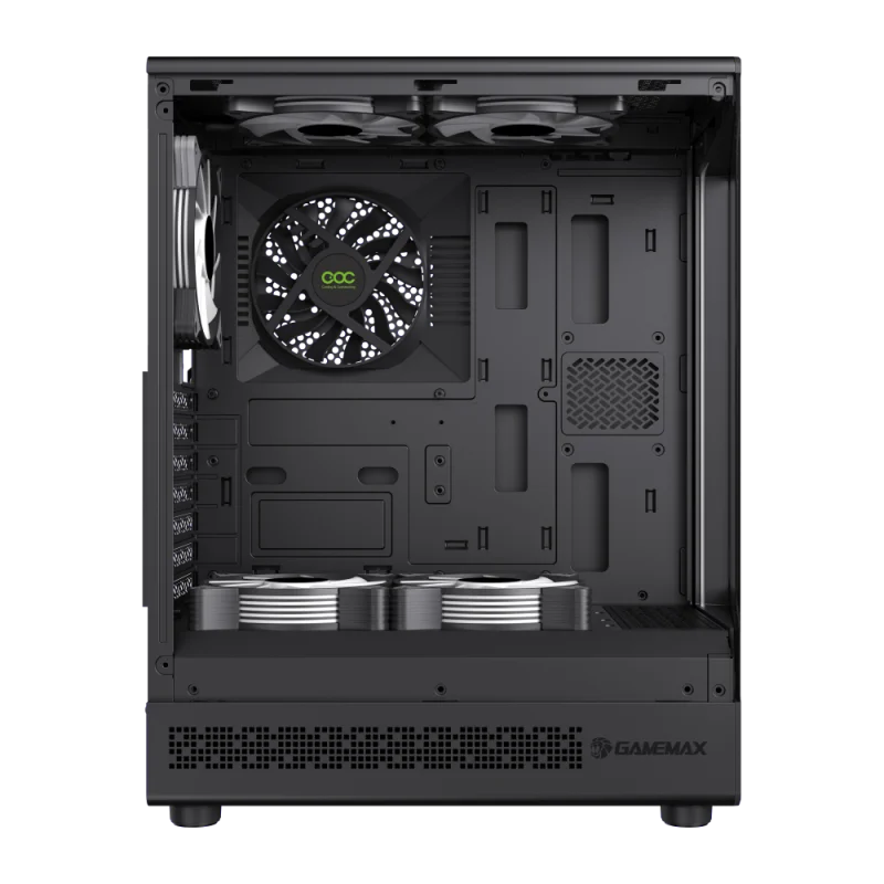 | Compatibilidad de Ventiladores  |   			  			  				  					  						| Arriba |   						2x120mm (incluido), 2x140mm (ventilador opcional) |   					   					  						| Trasero |   						1x120mm (incluido) |   					   					  						| Placa M/B |   						1x120mm COC Turbo Fan (incluido) |   					   					  						| Cubierta de la fuente de alimentación |   						2x120mm (incluido) |   					   				  			   			 |