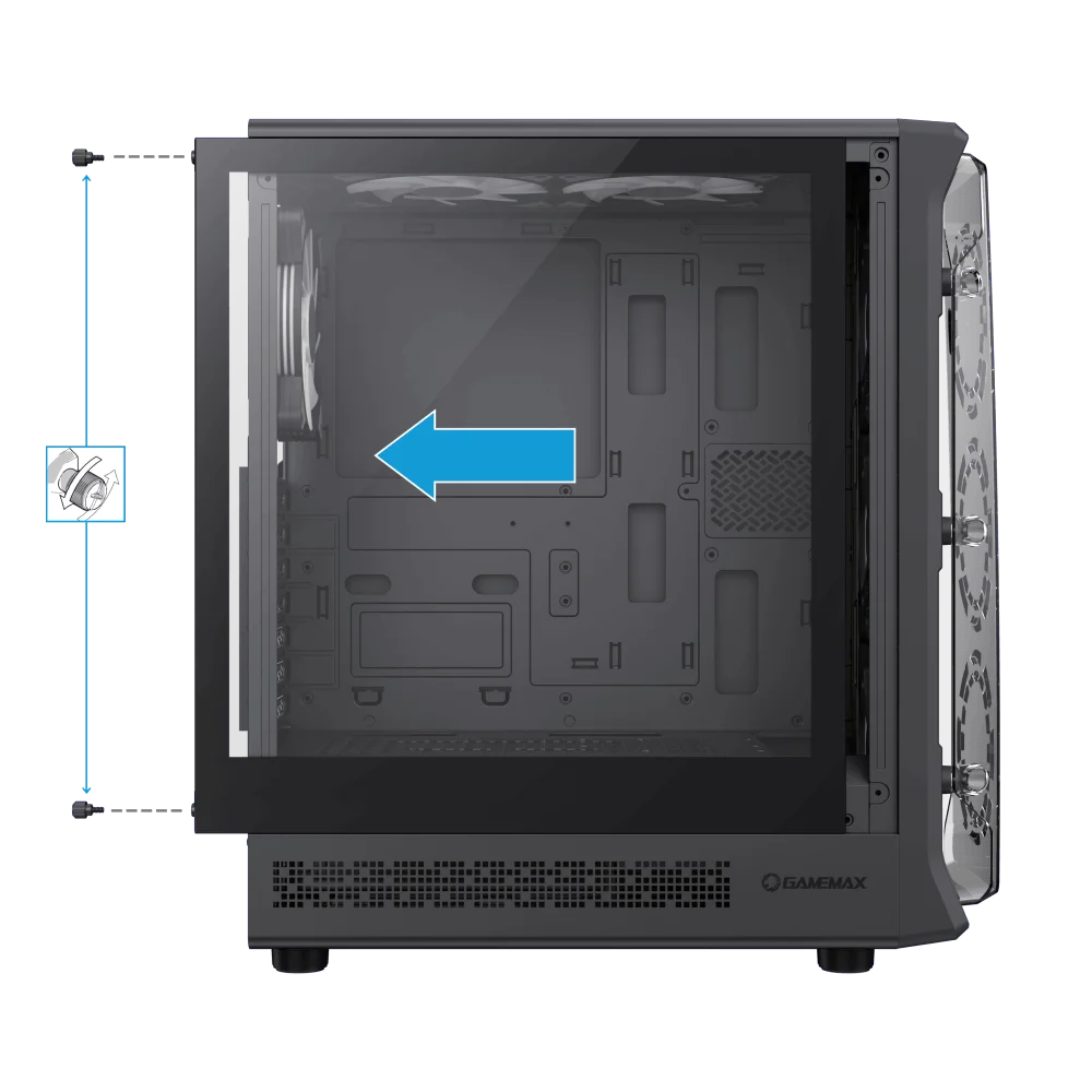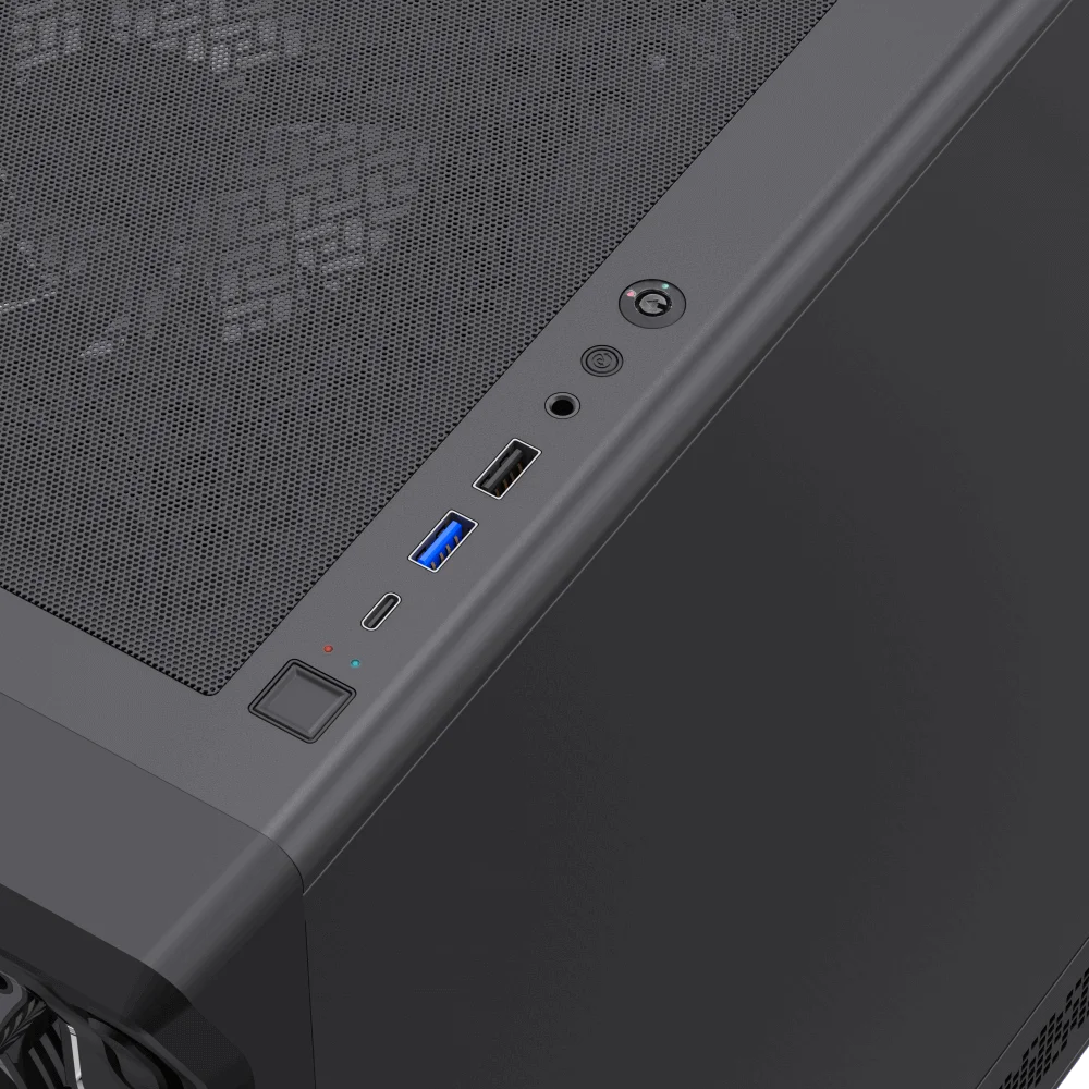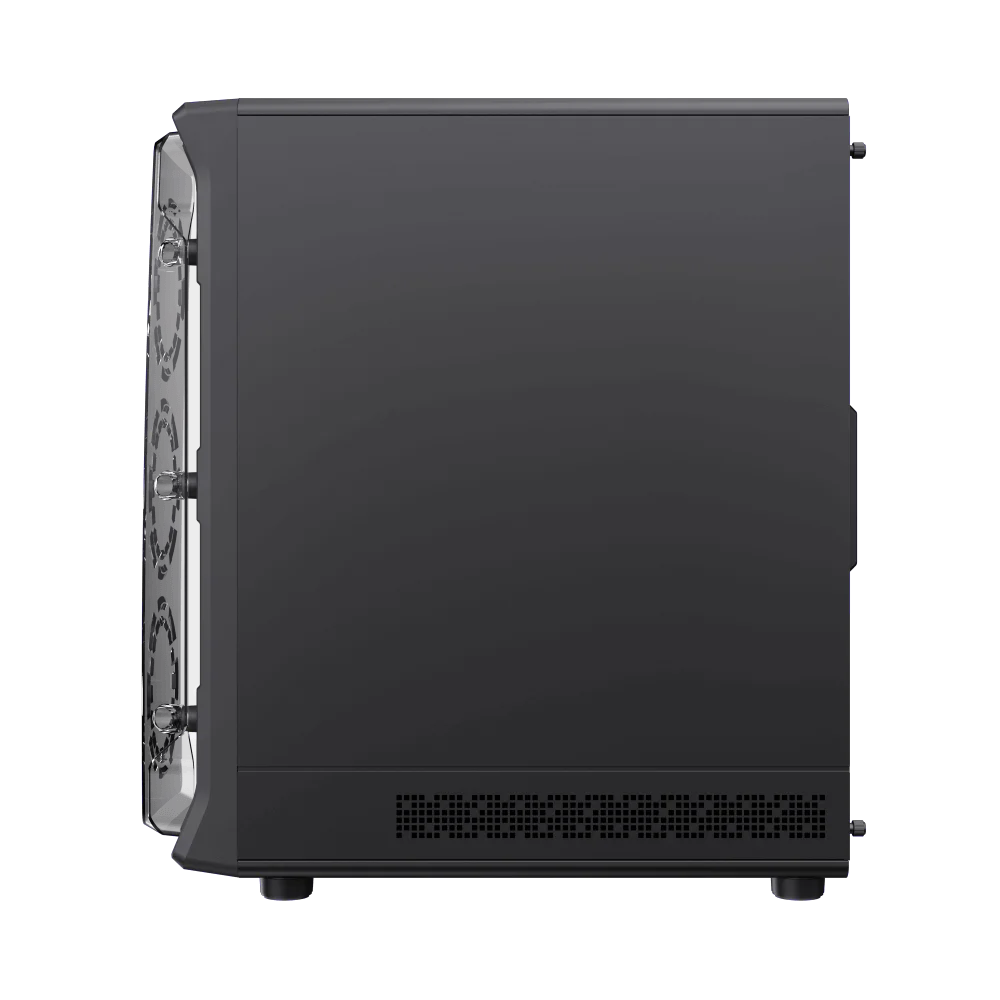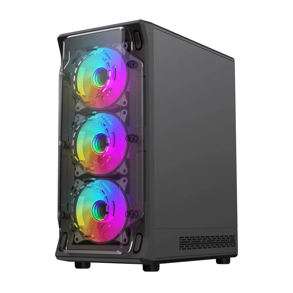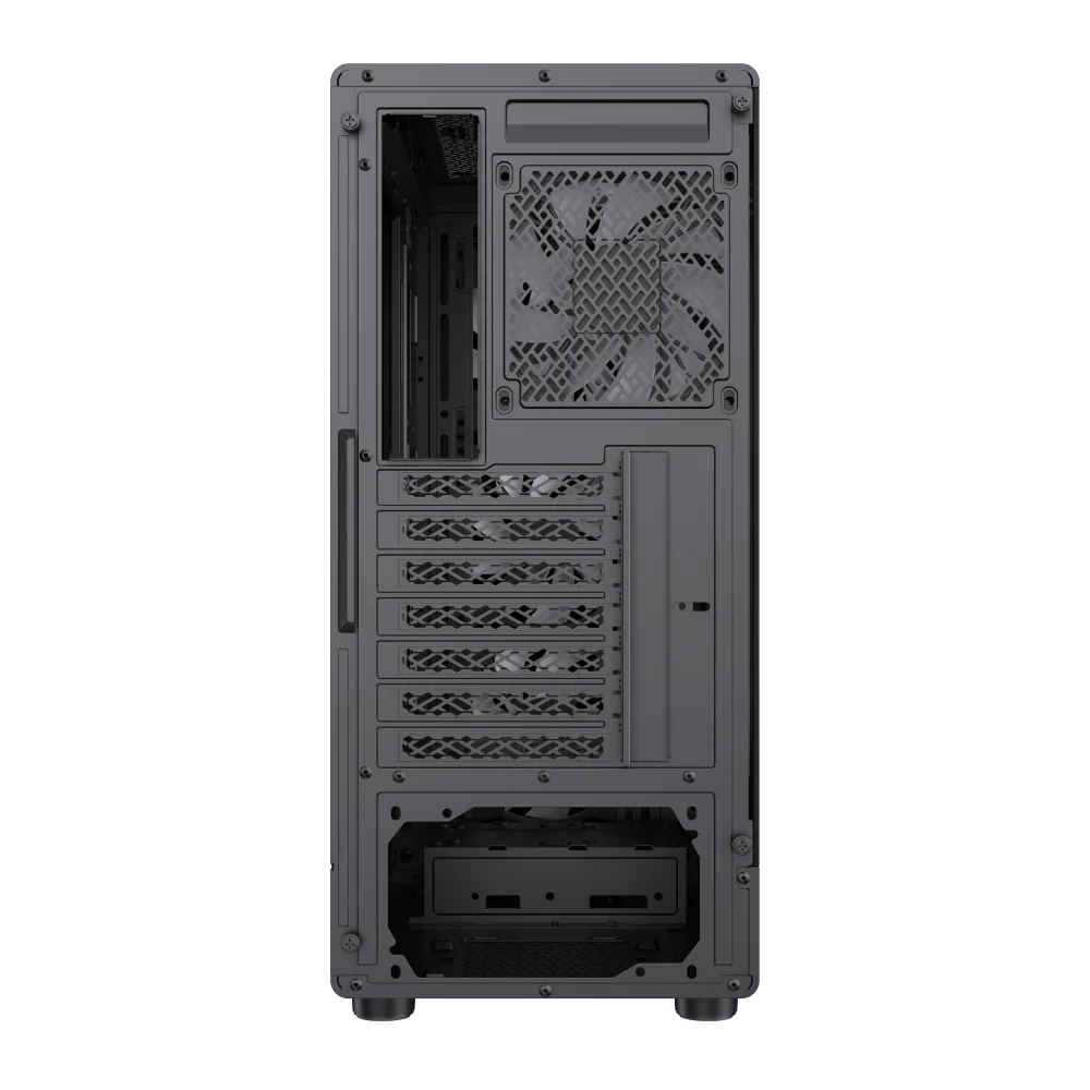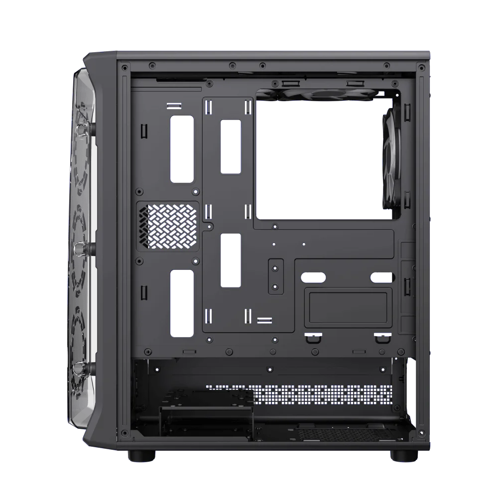 | Compatibilidad de Ventiladores  |   			  			  				  					  						| Frente |   						3x120mm incluido |   					   					  						| Arriba |   						2x120mm incluido, 2x140mm (ventilador opcional) |   					   					  						| Trasero |   						1x120mm incluido  |   					   					  						| Cubierta de la fuente de alimentación |   						2x120mm (Ventilador opcional) |   					   				  			   			 |
