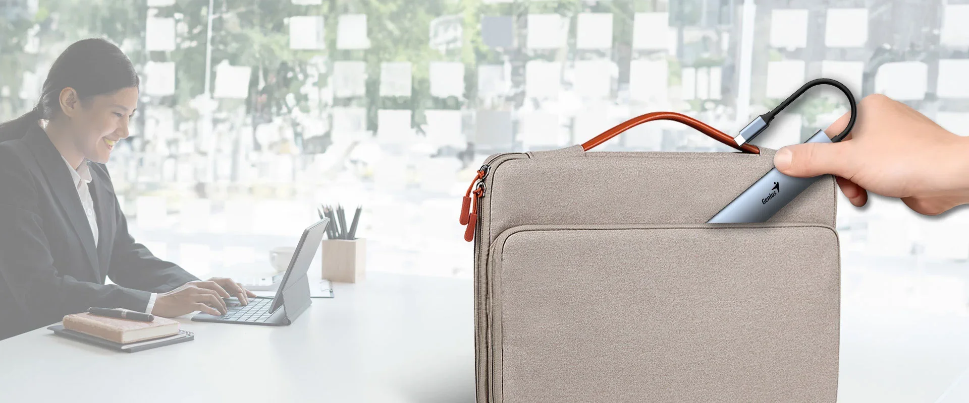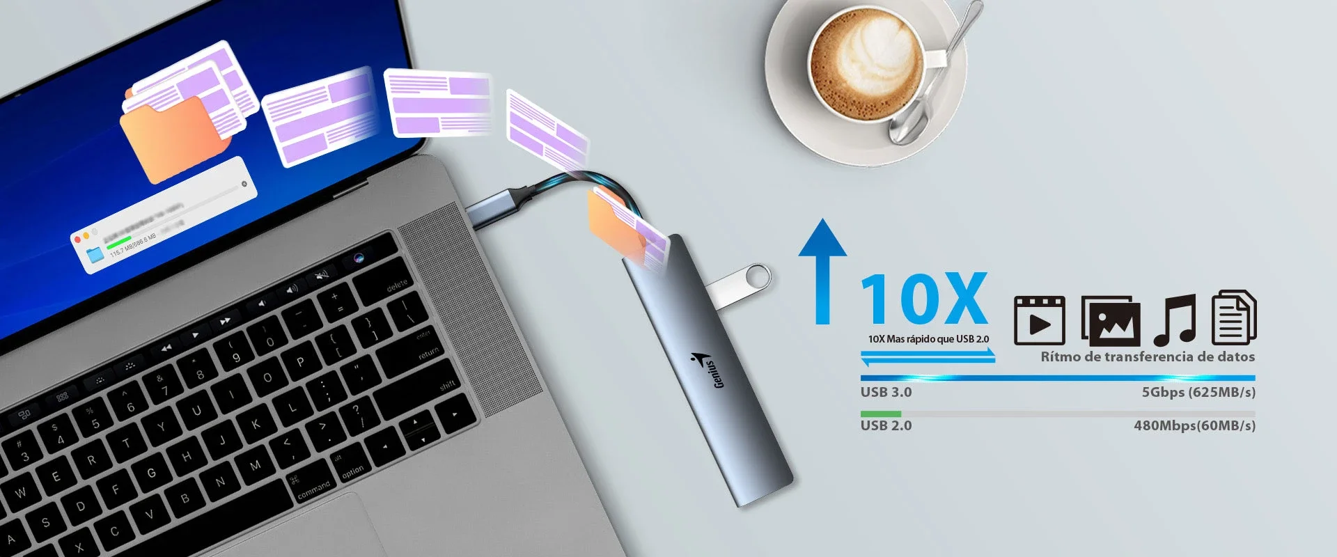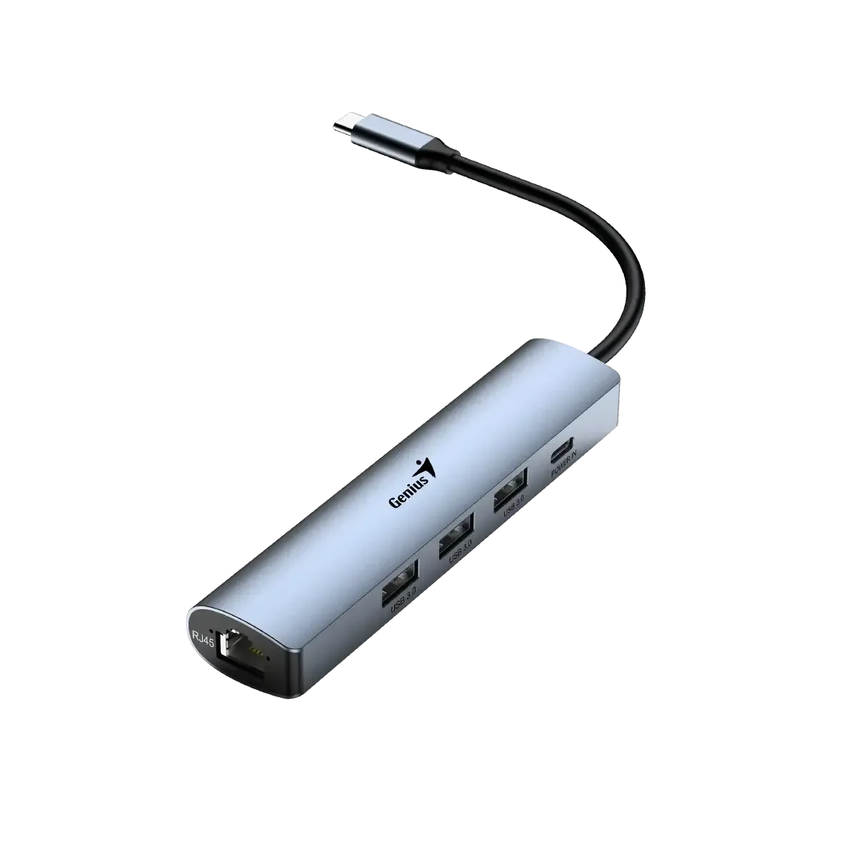 Hub Multipuertos Genius UH-545 5 en 1 / Interfaz: USB-C a 1*Ethernet RJ45 (Gigabit), 3*USB-A 3.0 (datos), 1*USB-C PD (carga) / Compatible: Windows®, Mac OS, Android, Apple IOS / Plug & play |