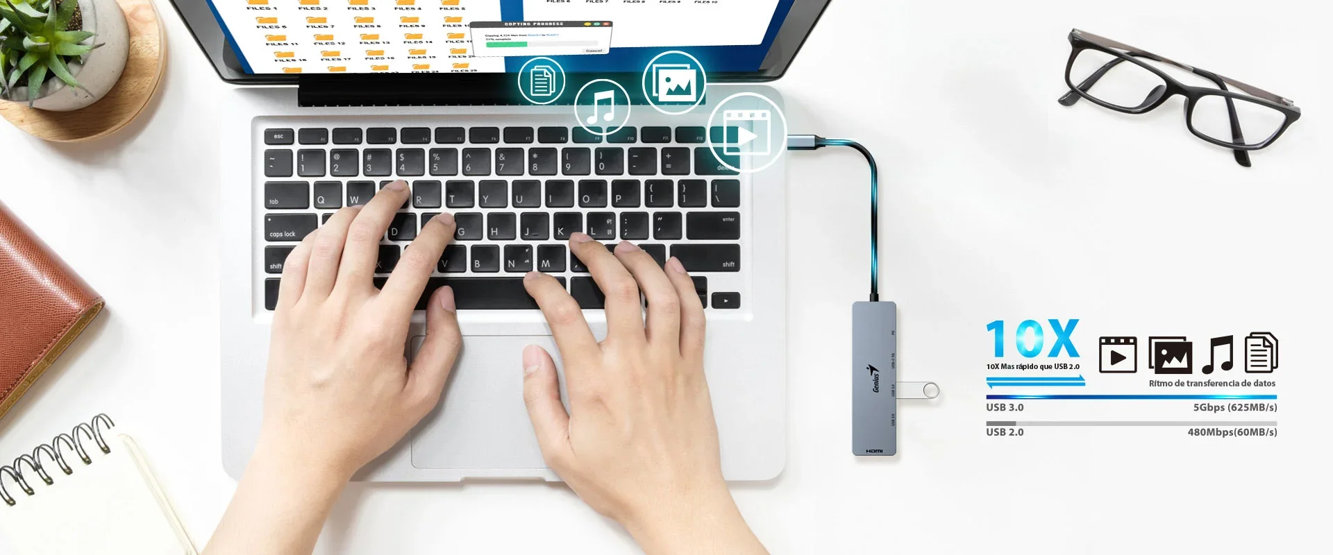 Hub Multipuertos Genius UH-500 5 en 1 / Interfaz: USB-C a 1*HDMI 4K@60Hz, 1*USB-C PD (Carga rápida 100W), 2*USB-A 3.0 & 1*USB-C 5G, / Compatible: Windows®, Mac OS, Android, Apple IOS / Plug & play |