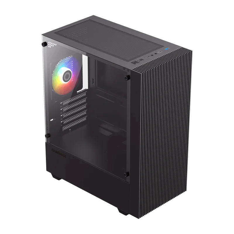 CAJA GAMEMAX EDGE BK / M-ATX , M-ITX / *1 USB 3.0, 1* 2.0 / VENTILADOR FRGB POST. 1*12CM / SOPORTA TARJETA VGA DE 320 mm / LAT. VIDRIO TEMP. Y LÍNEAS DE FLUJO DE AIRE FRONTAL. /
