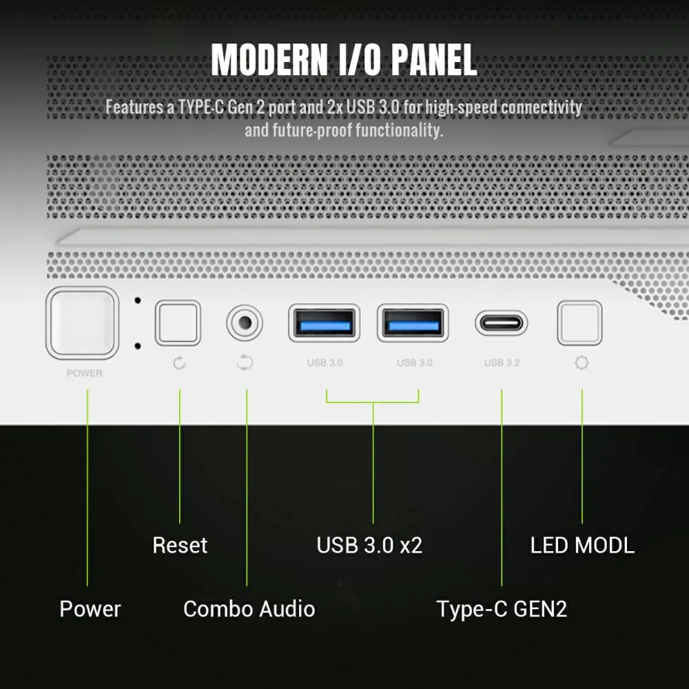 Leader 2 WH / E-ATX, ATX, M-ATX, ITX / 2*USB3.1, 1*USB-C, 1*Audio Combinado / LAT. VIDRIO TEMPL. FRONTAL MALLA METAL CONTROLADOR ARGB PWM AURA Sync/ 1*FAN RGB post (ya incluido), 3* FAN RGB FRONT (ya incluidos), 2* FAN Inferior (opcionales). |