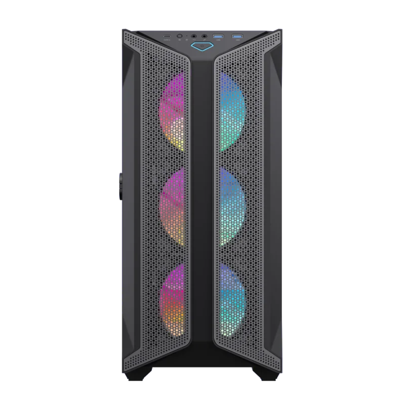| Compatibilidad de Ventiladores  |   			  			  				  					  						| Frente |   						3 x 120 mm (FN12A-S5) incluidos |   					   					  						| Arriba |   						2 x 120 mm, 2 x 140 mm (ventilador opcional) |   					   					  						| Trasero |   						1x120 mm (FN12A-S5) incluidos |   					   					  						| Lado izquierdo |   						0 |   					   					  						| Cubierta de la fuente de alimentación |   						2x120 mm (Ventilador opcional) |   					   				  			   			 |