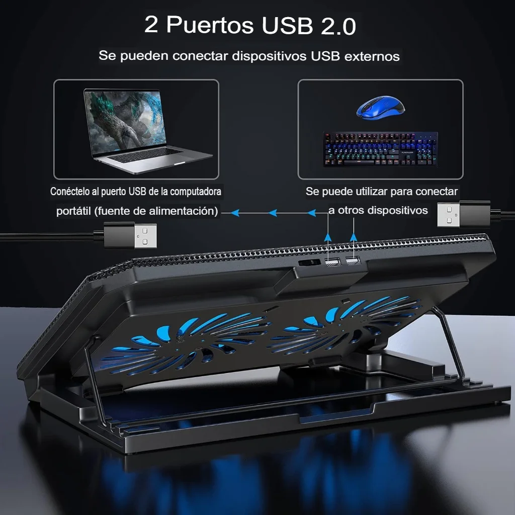 Base de Enfriamiento P/Laptop XTRIKE ME FN-818 / hasta 17" / 2 Ventiladores Led Azul / 2 Puertos USB / 5 niveles ajustables / Soporte extra para celular