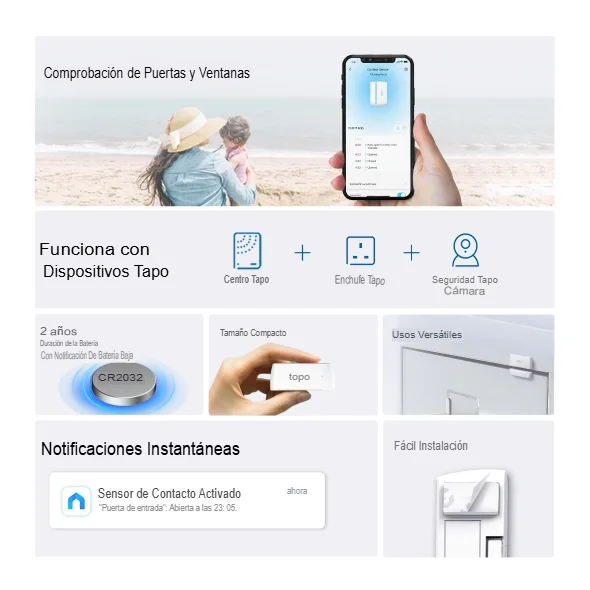 Tipo | Sensor de contacto Smart inalámbrico para Puerta y Ventana por control en APPs |