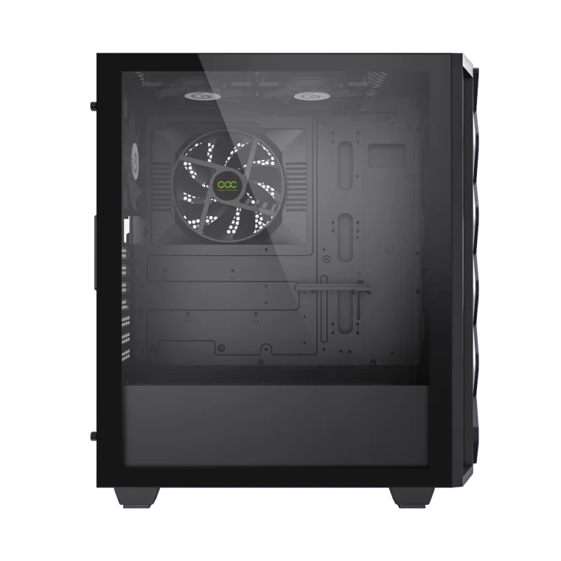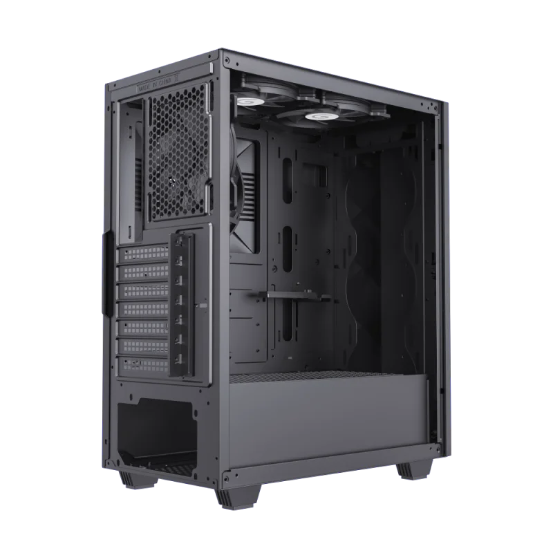 | Ventilador incluidos |   			  			  				  					  						| Frente |   						3 x 120 mm, 2 x 140 mm (ventilador opcional) |   					   					  						| Arriba |   						2 x 120 mm (ventilador ARGB incluidos) |   					   					  						| Trasero |   						1 ventilador de 120 mm (ARGB incluido) |   					   					  						| Placa MB |   						1 ventilador turbo de 140 mm (incluido) |   					   					  						| Cubierta de la fuente de alimentación |   						2x120 mm (Ventilador opcional) |   					   				  			   			 |