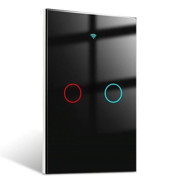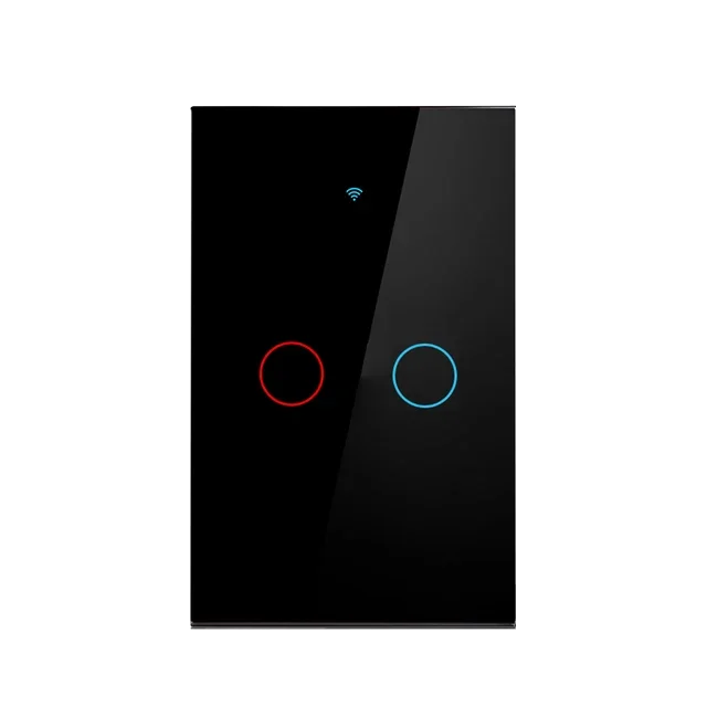 Interruptor de pared Smart WIFI WHC06 / 2 botones táctiles / No requiere Neutro / Control por APP Tuya o Smart Life / compatible con Alexa, Google Home / Dim.: 120*72*5mm / negro